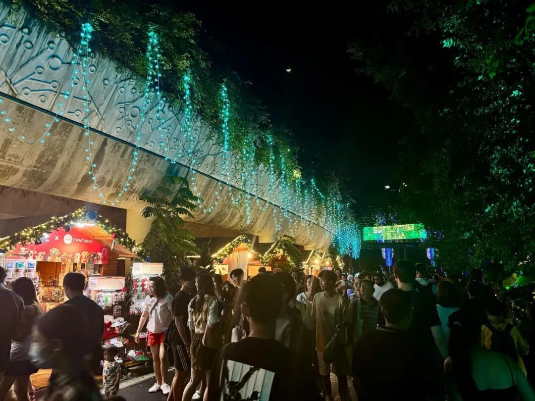 园区内还有精灵与帮手互动,搭配现场颂歌、快闪及本地艺术家表演,让节日夜晚更具氛围。
