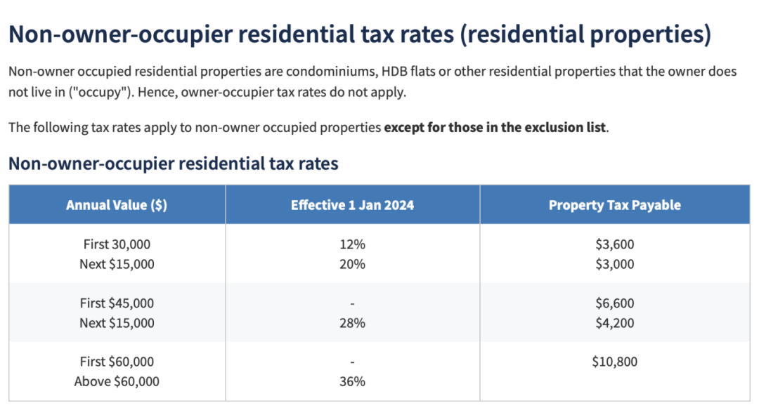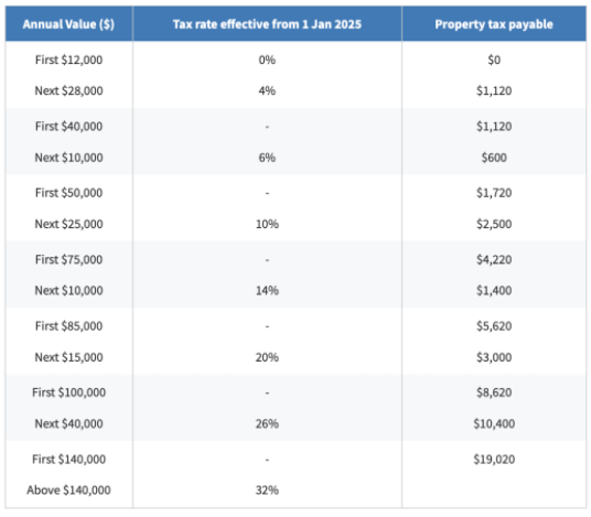 屋主自住房享受优惠税率,年值首12000新币免税,后28000新币收4%的税。基本上,只要不是豪宅,税率不会超过4%这个范围。