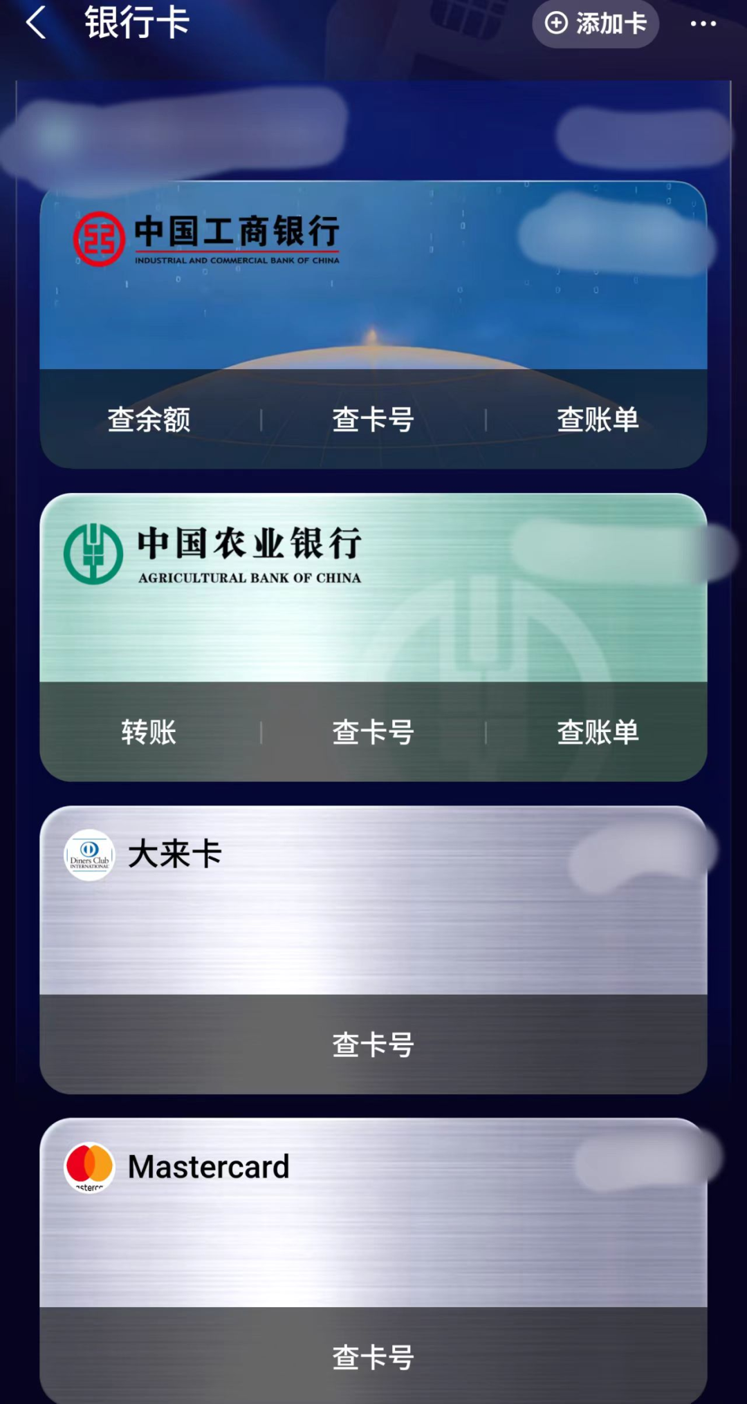 在「钱包」内,点击「银行卡」>「添加银行卡」,进入身份信息填写及绑定外卡流程。