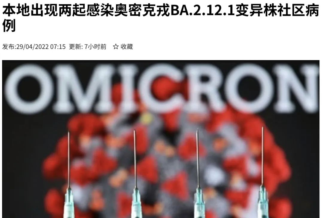 不过卫生部也特别说明,BA.2.12.1相比之前的变异毒株,没有引起更严重疾病的迹象。