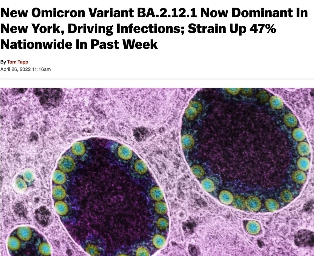 在纽约州、新泽西州和康涅狄格州,奥密克戎BA.2.12.1变异毒株已经占了新增新冠病例的52.3%。