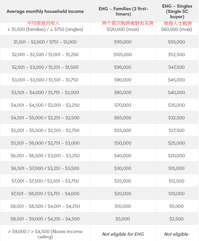 如今,升级后的EHG在津贴方面要简单得多,也慷慨得多:收入上限仍为9000新元,但首次购房家庭的津贴金额已提高至最高12万新元。