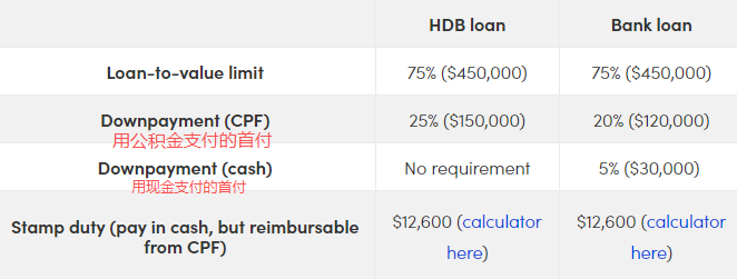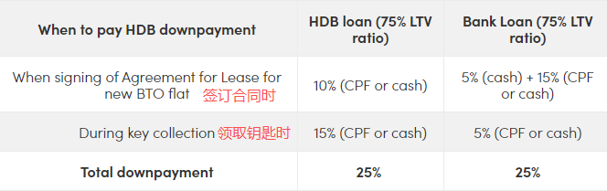 ①通过HDB贷款:首付25%(可用公积金或现金支付)