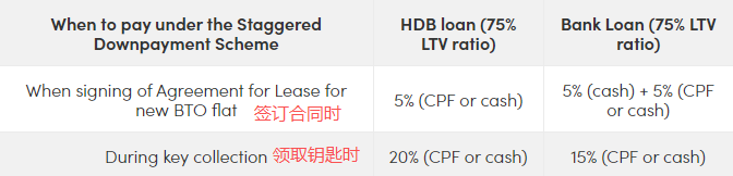 在这项计划下,购买BTO组屋的首付支付比例如下: