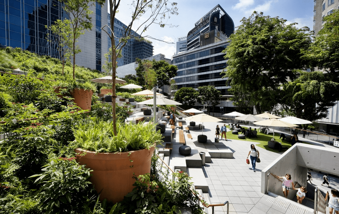 一个遮阴的屋顶口袋公园