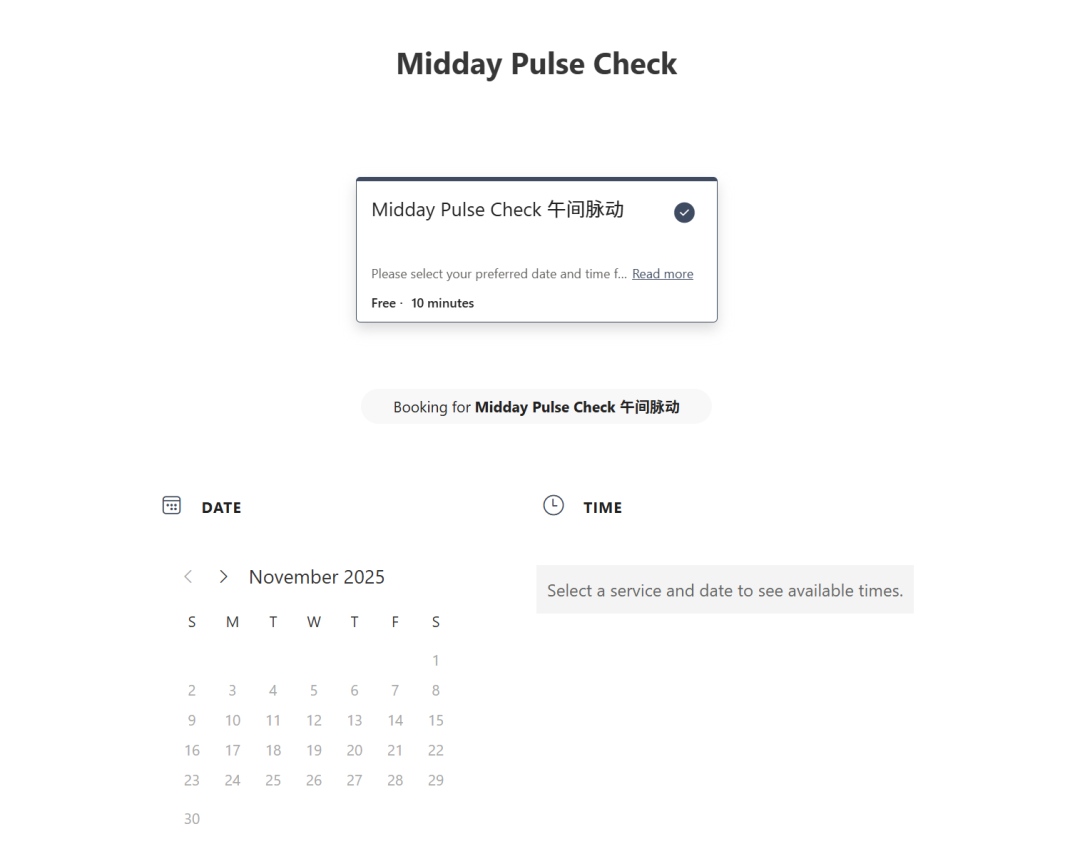 中医咨询需提前注册(https://outlook.office.com/book/MiddayPulseCheck@singaporeccc.org.sg/?ismsaljsauthenabled)。