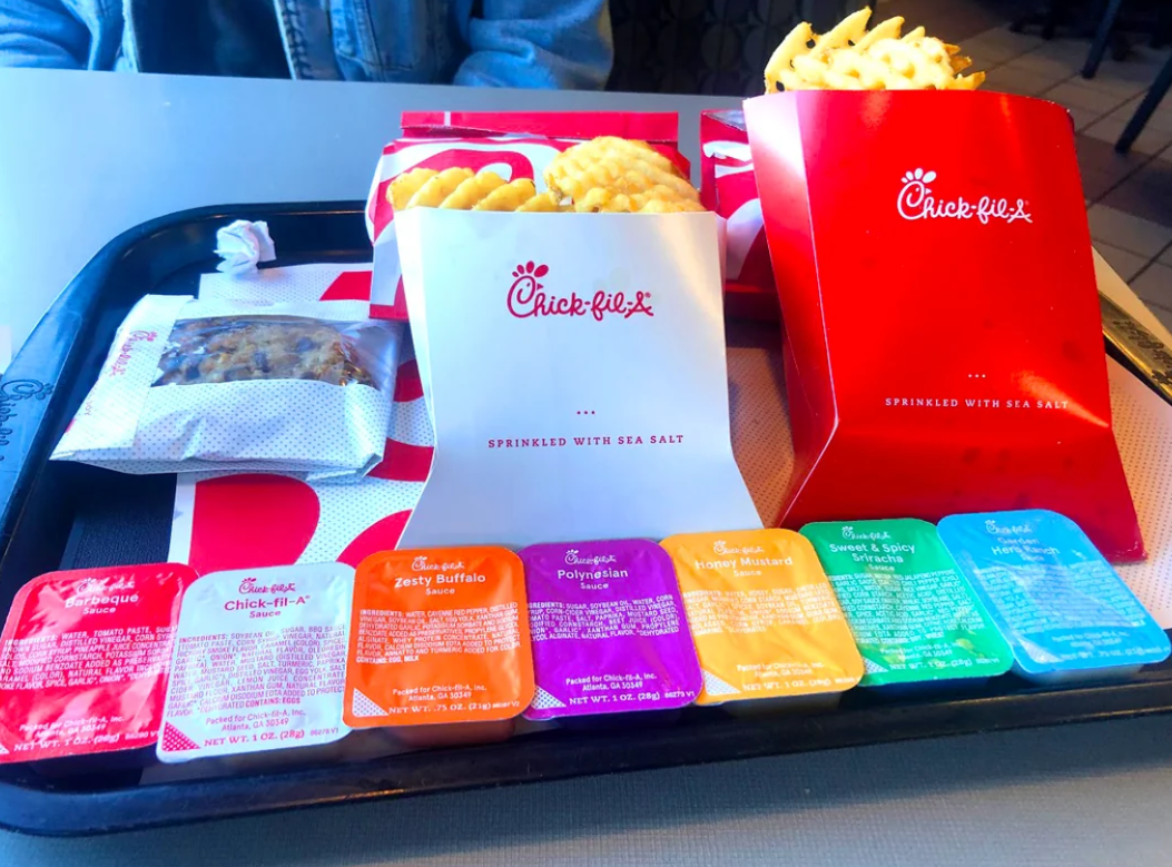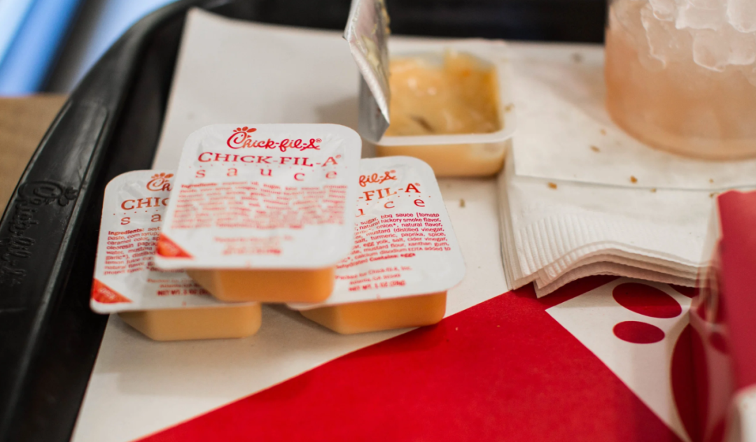 Spicy Chili辣酱 绝对是全场C位!经过百人品测敲定,蒜香浓郁带劲辣,搭配炸鸡堪称灵魂暴击,辣度党直接锁死,经典Chick-fil-A Sauce(烟熏酸甜口)、甜辣是拉差等5款酱料依旧免费畅拿,混搭吃法任你解锁。