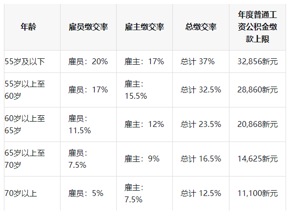 在普通工资部分(通常指月薪),公积金缴款基数上限为每月7400新元(2025年标准,2026年会涨到8000新元)。