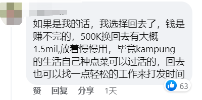 不过,也有人对事主的想法不太苟同,认为不管再怎么说,新加坡的条件都比马来西亚更好些,对下一代来说更是如此,似乎在劝谏事主不要那么意气用事。