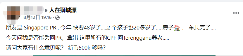 “在新加坡打拼几十年后,CPF里有50万新币,我想回老家生活”