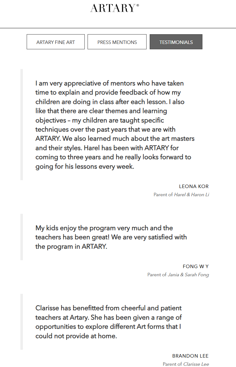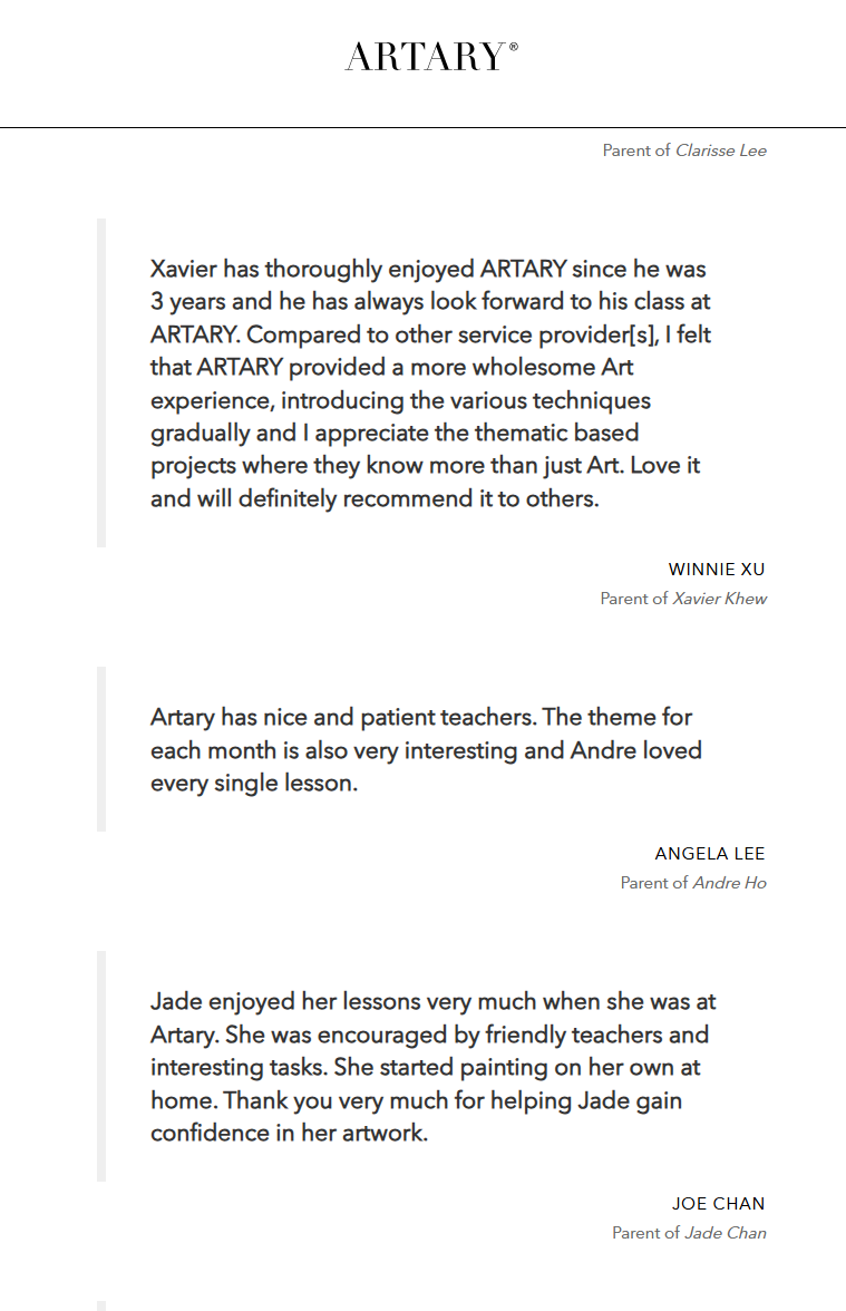 ARTARY是新加坡家长圈的 “宝藏美术校”,拿奖无数,2022/23 年包揽《Young Parents》“最佳课外教育学校”、《ParentsWorld》教育奖,还获新加坡总统志愿服务与慈善奖特别版认可。