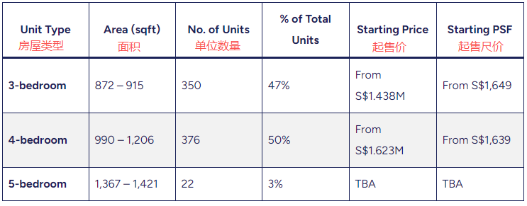 Coastal Cabana EC提供3至5卧房单位,面积从872到1,421平方英尺不等,主要面向从组屋升级的家庭或计划长期多代同堂的首次购房者。所有单位均为南北朝向,改善了通风并避免了强烈的午后阳光。