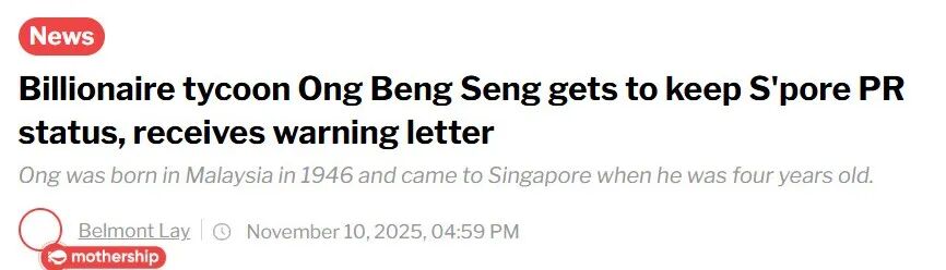猜测是王明星在新加坡的商业贡献,特别是将F1引入新加坡,以及他在本地深耕数十年的根基,都成为了审核时的有利因素。