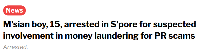 就在昨天(4月22日),一名15岁的马来西亚少年还因涉嫌为PR诈骗充当“跑腿”被捕。他在4月9日和11日分别从两名受害者手中收取了7500新和2200新现金。