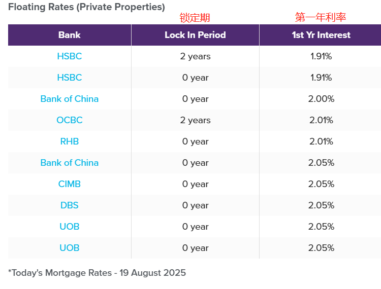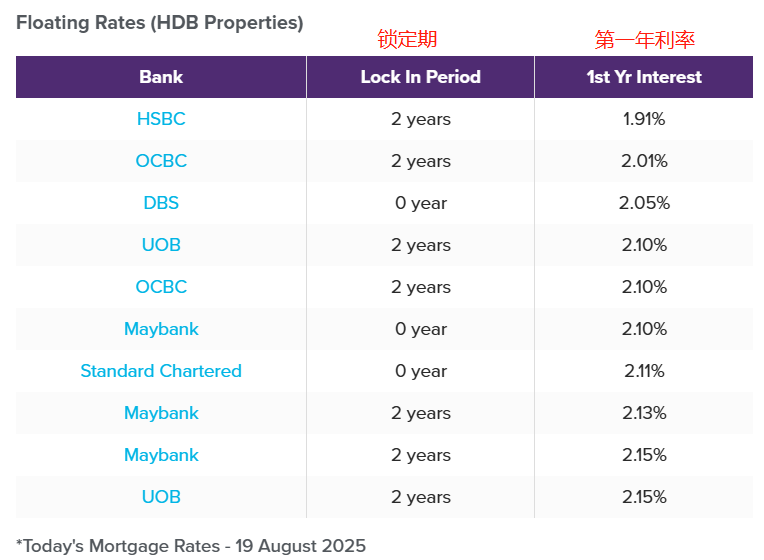 因为目前全球金融市场大环境的不景气,新元隔夜利率从今年开始连跌不止,进而也影响了银行贷款利率的下降。以下是目前新加坡各大银行能提供的最有竞争力的利率,有不少比建屋局提供的贷款(2.6%)确实更低。