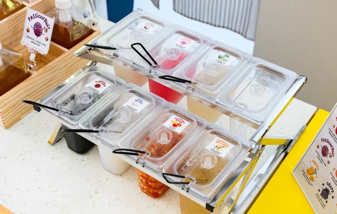 怕辣可去SCAPE 丁家铺旁的 Slushyah 喝冰沙降温,选杯(6.8-7.7 新元)后可任意搭配冰沙与配料,另有友好工作人员可提供建议。