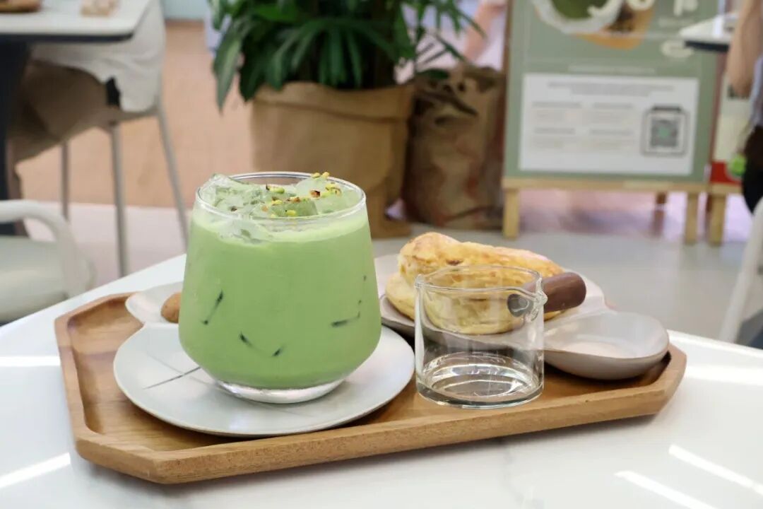 SCAPE 入口内侧的 SuiTok 咖啡馆氛围独特,主打烘焙糕点、抹茶及中式甜点,价格实惠, Ice Matcha Latte 5.5 新元等,适合放松且省钱。