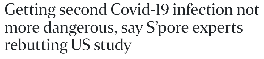 “二次感染新冠并不会更危险...”,来源:海峡时报