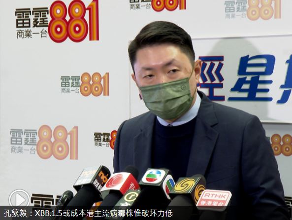 今年1月份XBB1.5进入香港时,港政府专家顾问、港大医学院内科学系传染病科主任孔繁毅接受了电视台的采访。