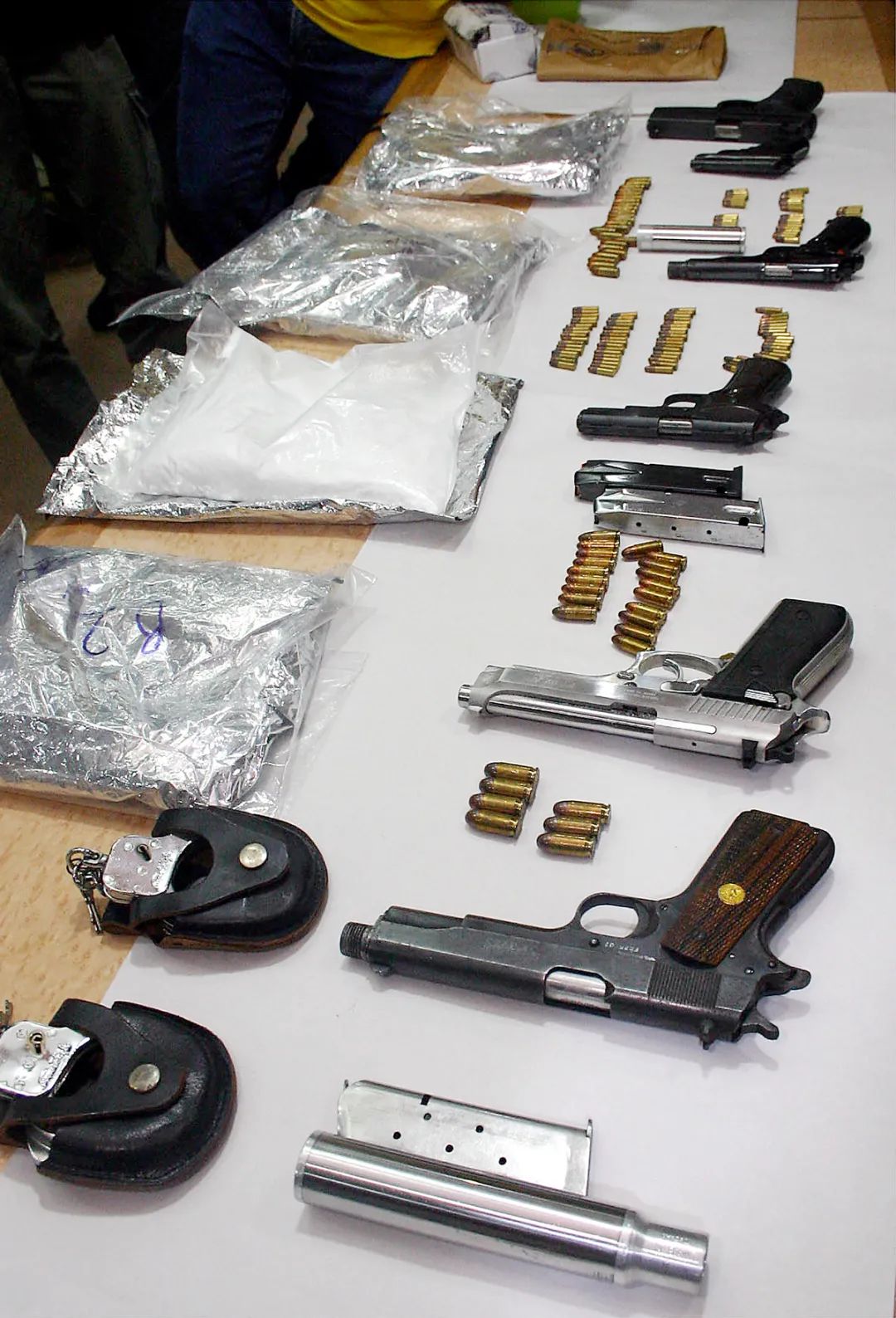 现场还发现6支枪,203枚子弹,2副手铐和4公斤毒品,市值近22,000新币。