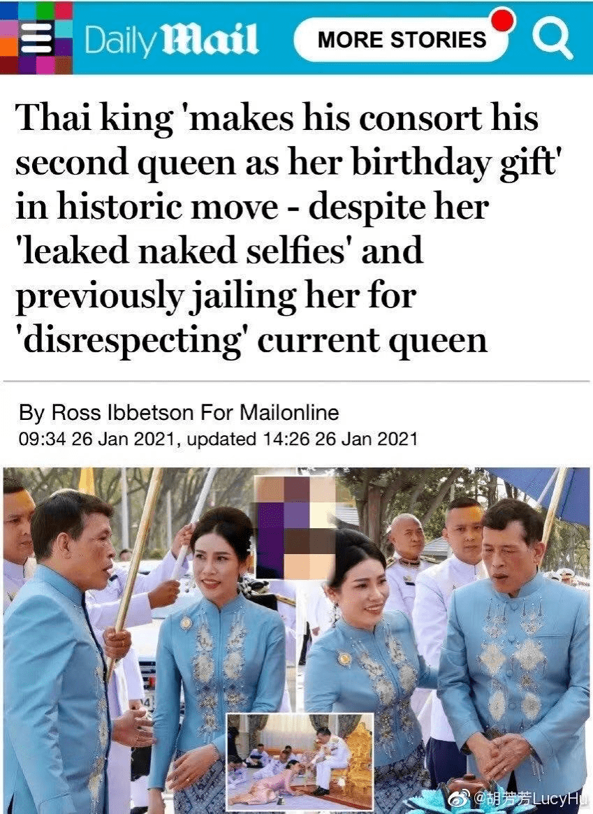 2021年1月26日是贵妃诗妮娜36岁生日,泰国国王为其举行了隆重仪式,有多受宠可见一斑。