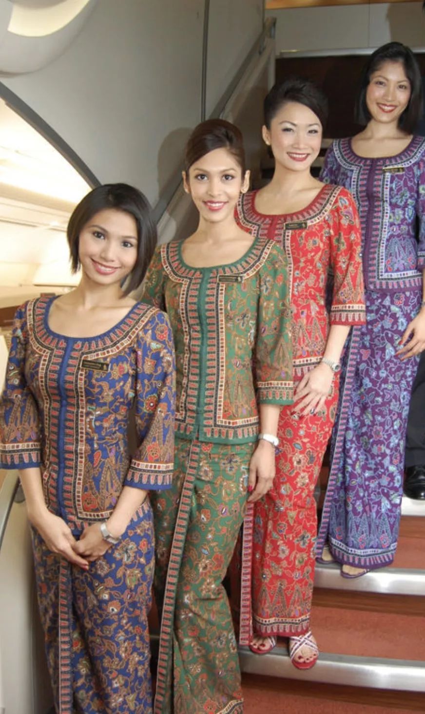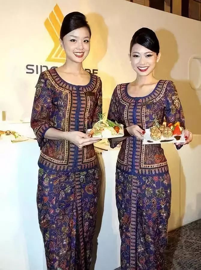 不同于一般的航空公司空姐服装,无论造型,还是花纹图案都自带浓浓的东南亚风情,看起来就像是传统服装。