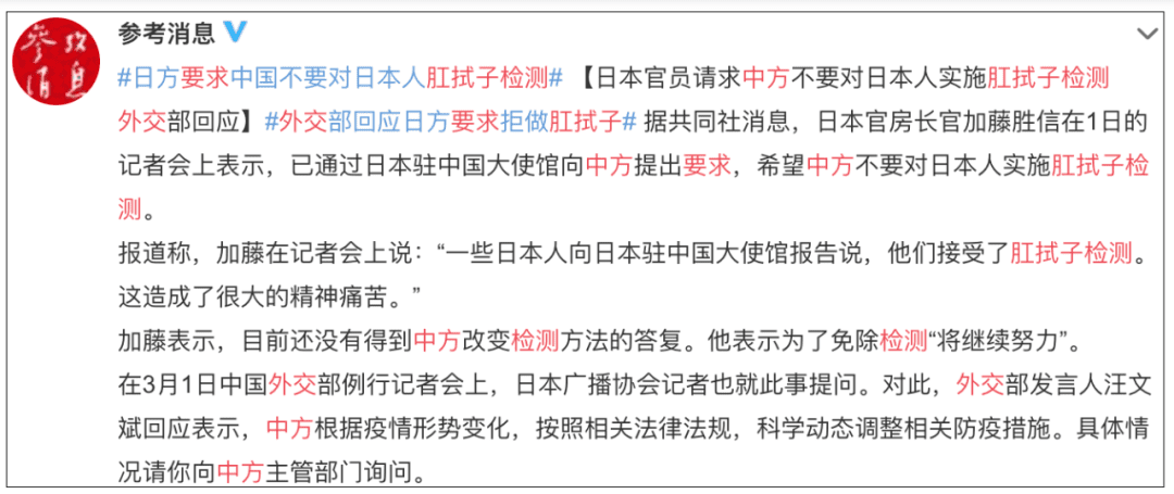 日本对中国喊话拒绝肛拭子检测!网友评论亮了