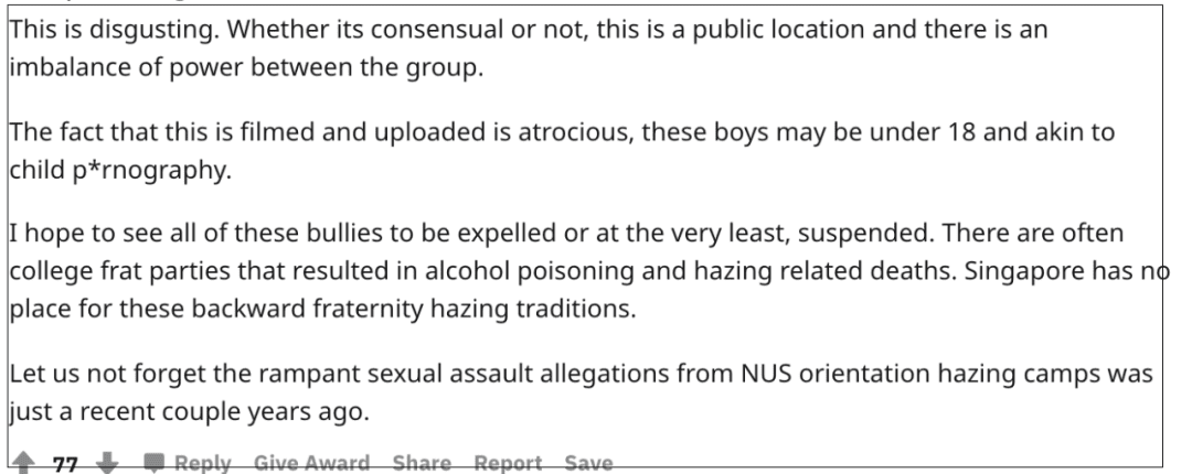 我希望这些暴行能够停止,不要再搞那些奇奇怪怪的仪式和派对了,这些糟粕赶紧丢掉,难道大家都忘记了之前国大迎新霸凌事件了么……