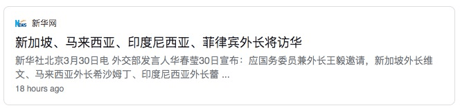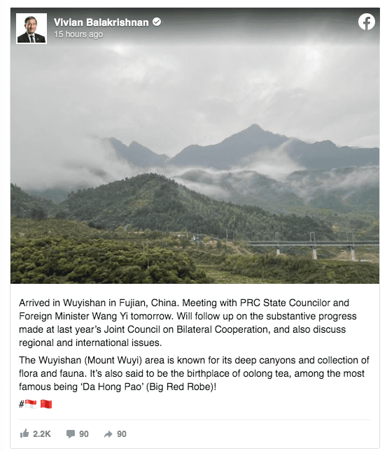 这两天新加坡维文外长在中国福建和王毅部长“会师”,再加上采访中的呼吁。