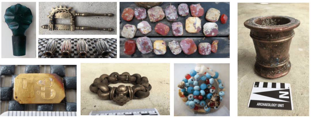 船上发现的主要有中国瓷器,玻璃器皿和玛瑙物品,还有船锚及九门大炮。