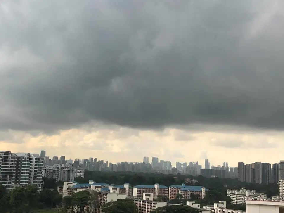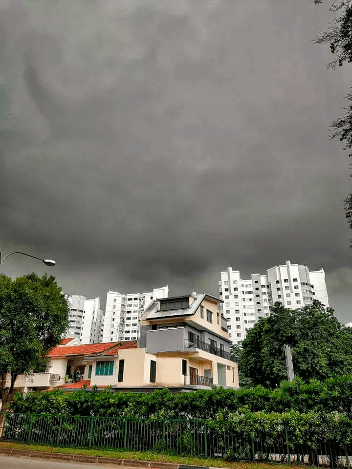 昨天白天的时候,也出现了黑云压境的场面,还是新加坡熟悉的天气配方。