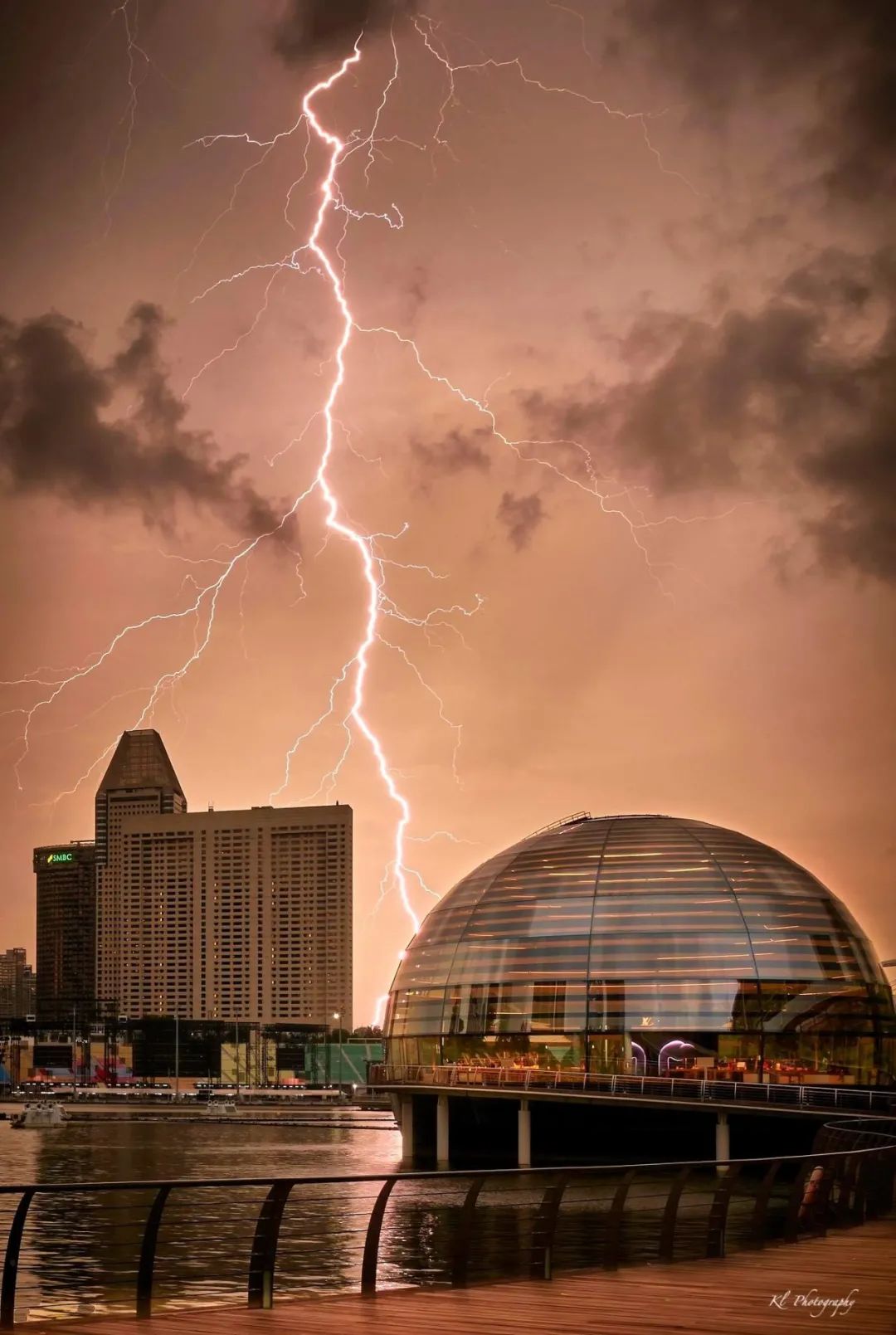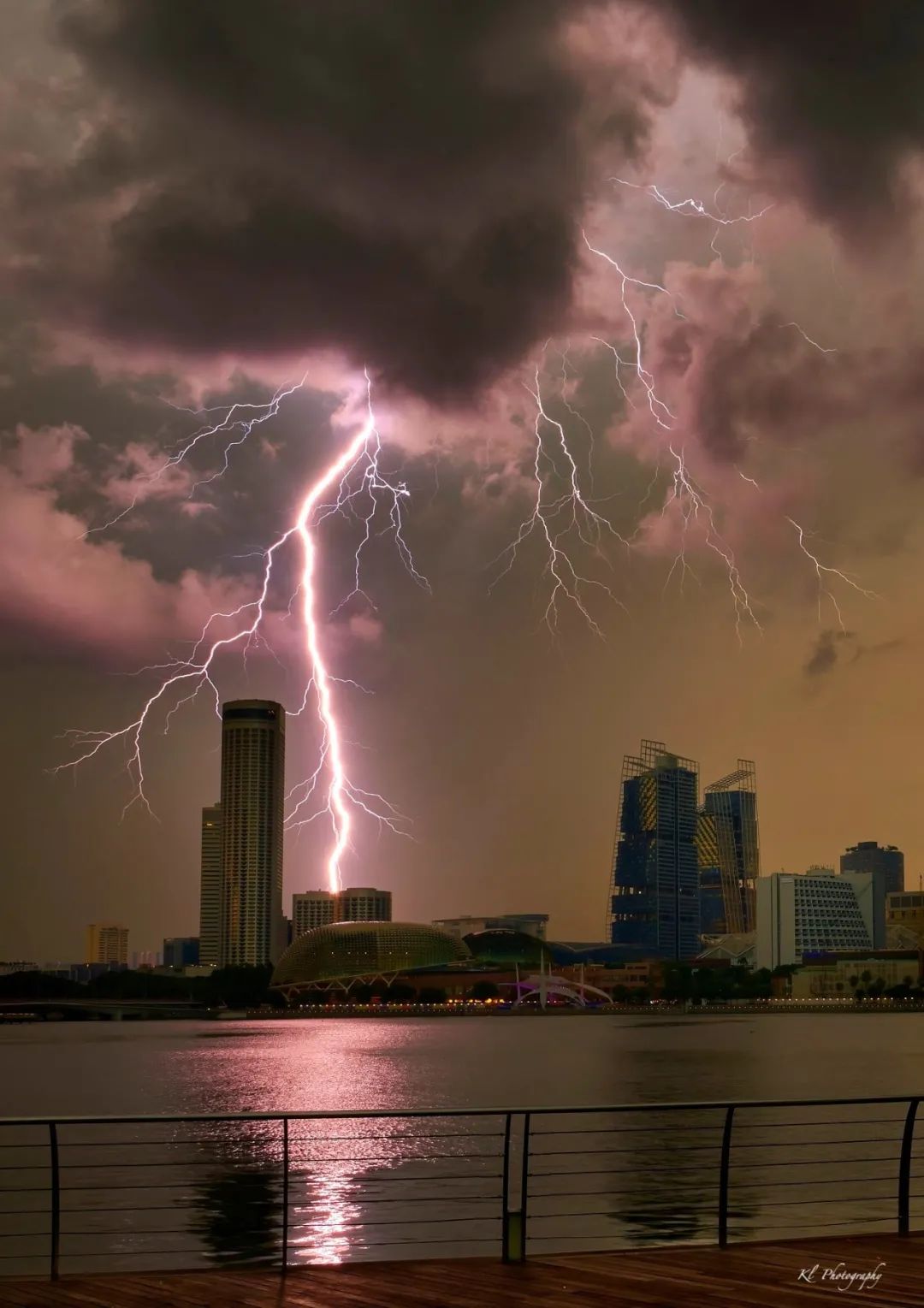 在滨海湾那边看到的场景,也是比较瘆人的。。。看起来就跟闪电最终还是朝新加坡CBD伸出了魔爪。