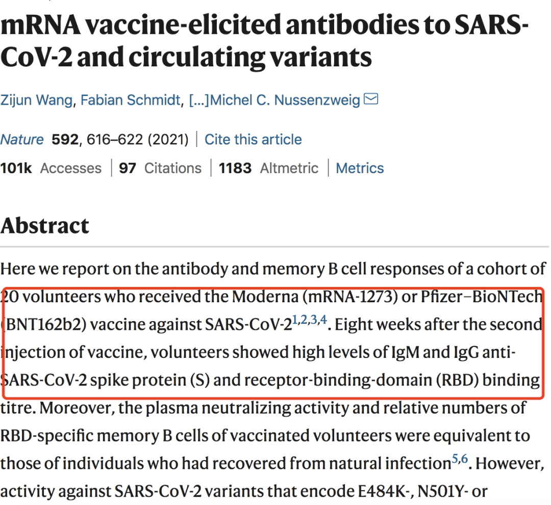 打完第二剂辉瑞、莫德纳等mRNA疫苗的8周后,接种者的IgM、IgG抗体水平仍然非常高。