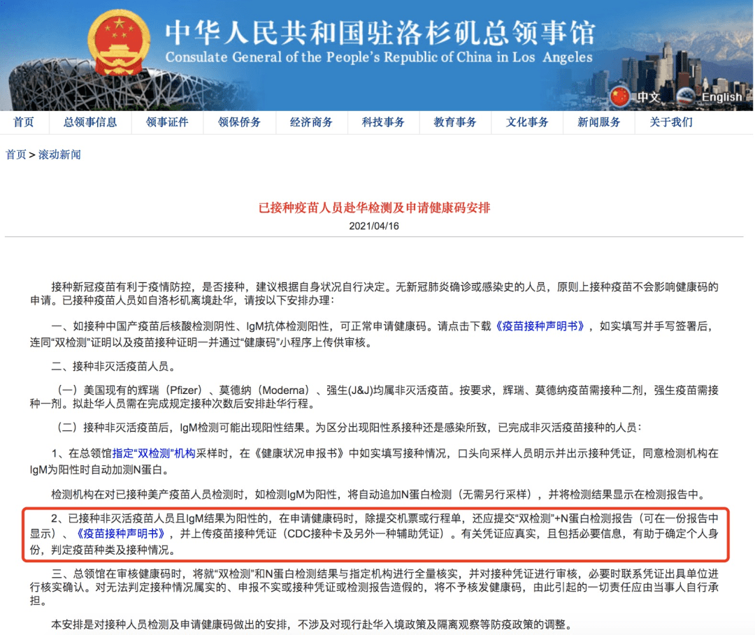 现在,中国驻各国大使馆其实都已经针对接种国产疫苗/非灭活疫苗两种情况列出不同标准。