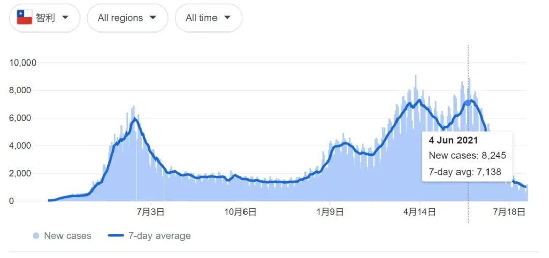 而疫苗接种率更高的邻国智利,也因为拉姆达的入侵,引发了新一轮的疫情。