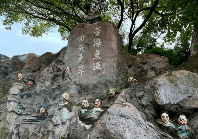 这里有很多栩栩如生的雕像讲述中国神话或民间故事:西游记、白蛇传、十殿阎罗等,颇有警世意味。