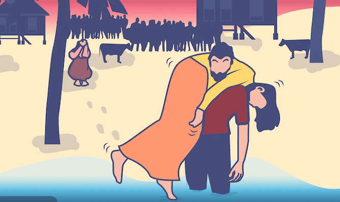 米娜试图跟着船游,但她溺水了;琳娜跳进海里试图救她也淹没在海里。