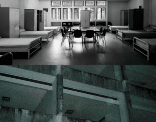 而这个营房外墙上又有各个陆军作战单位的图腾(据说是辟邪用),看起来确实与众不同,似乎增加了几分故事的真实性。