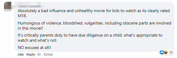 绝对是一部对小孩影响恶劣、不健康的电影,因为它明显被评为M18。