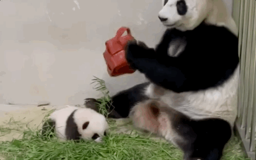 现在,这只小可爱已经长到了六公斤了,它的体重是刚出生的三十多倍~可以看出来大熊猫麻麻佳佳和照顾它的团队有多么用心了。