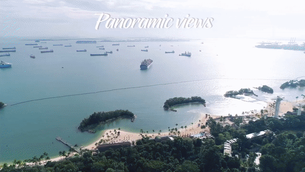 “天空喜立”SkyHelix Sentosa的游客还可以在十二分钟旅程中观赏到圣淘沙缆车自由穿梭的经典场面!