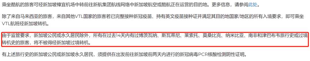 看到这里,可能很多小伙伴可能有疑惑,之前新加坡不是禁止所有在过去14天内有过博茨瓦纳、斯瓦蒂尼、莱索托、莫桑比克、纳米比亚、南非和津巴布韦旅行史或过境转机史的旅客吗?