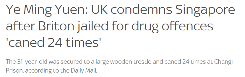 而在新加坡,要被判有期徒刑20年,还要受到24次鞭刑的惩罚!