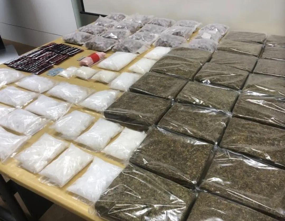 8. 296公斤海洛因、5.014公斤冰毒、20.5公斤大麻、1000颗爱他死药丸、100颗埃利敏5号药丸 ……