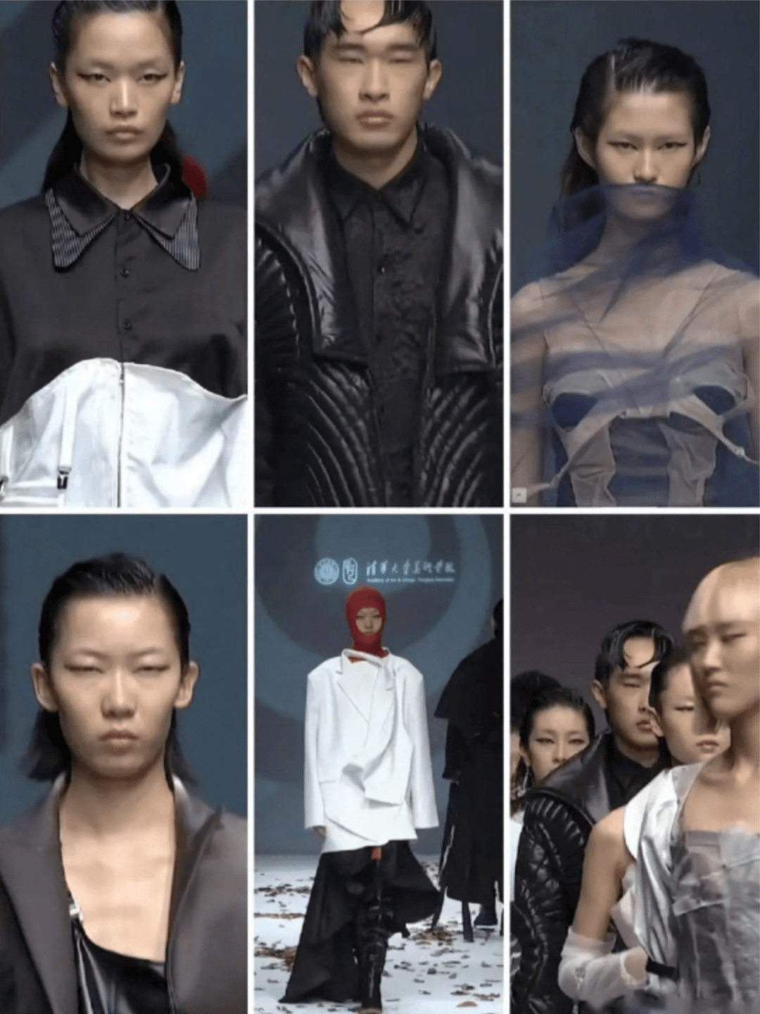 清华大学美术学院,2021年服装与服饰设计专业的毕业设计作品发布会上,模特的眼睛好像一个模子印出来的↓