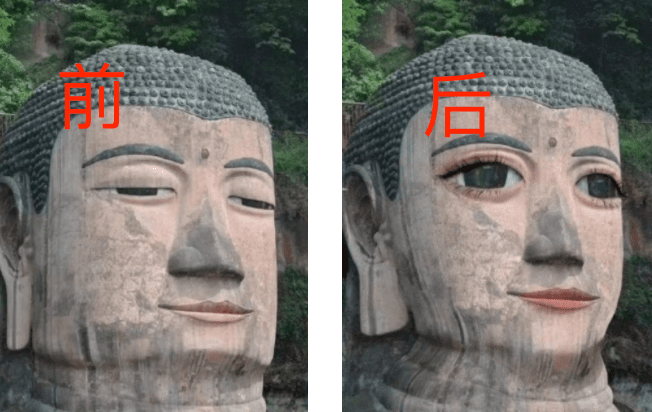 有人觉得模特太惨,因为眼睛小担心遭受无妄之灾,给自己P眼睛的时候,顺便给这位大佛也开了个眼角。