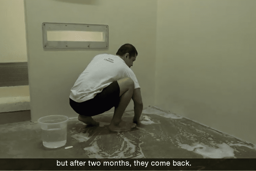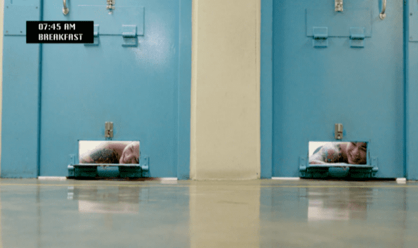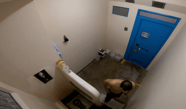 所以重刑犯囚室里面尽量没有配件,并且严格禁止对牢房进行任何改装,包括在墙上粘挂钩。