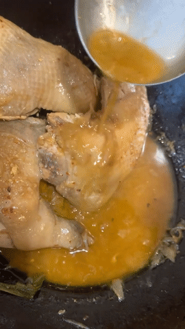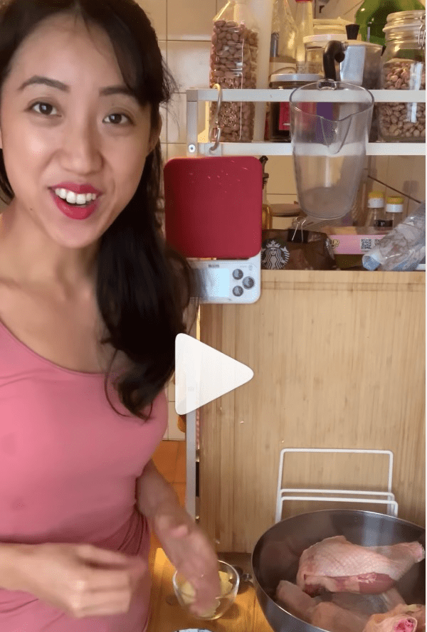 在烹饪过程中,她其实也准备了汤汁给鸡腿肉“上色”,也没有提到说是咖喱。