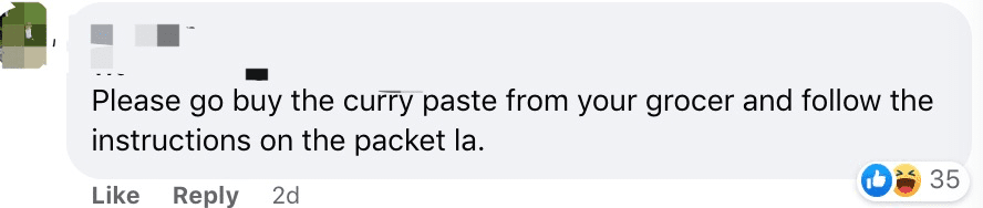 “真的是太丢脸了。咖喱鸡怎么能这么做,换一种做吧,不要给新加坡人丢脸。”