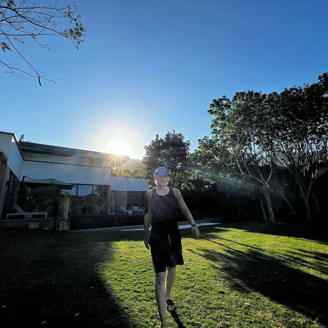 去年12月底,徐艺洋晒出了一张生活照,照片的右下角镜子反射中清晰可见一位穿着背心的肌肉男,